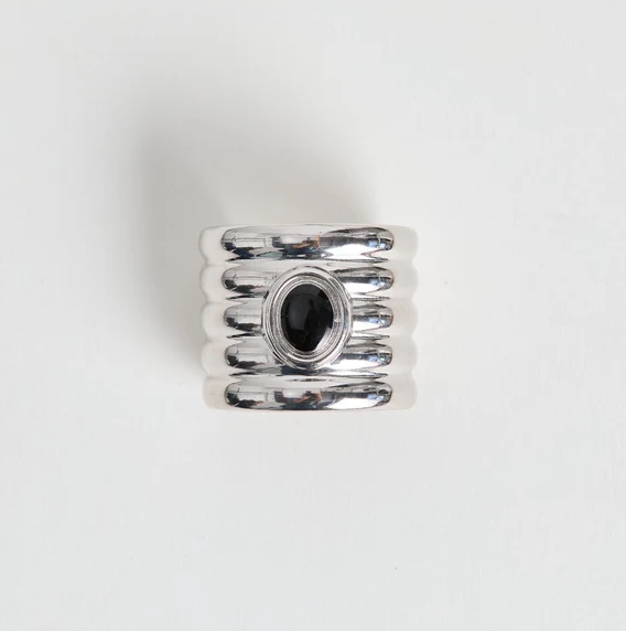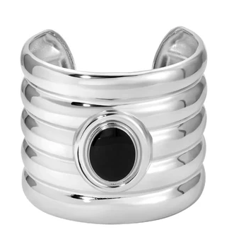 Modern and sculptural, the Clarke Cuff is crafted from stainless steel for lasting durability and shine. Designed with smooth ridges and a deep black enamel center, it offers a bold yet refined statement that channels timeless industrial elegance.