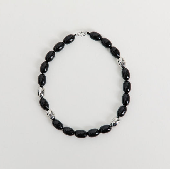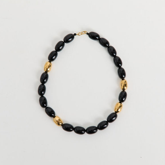 The Clementine Necklace — a strand of smooth resin beads finished with a sculptural gold-plated S-lock, the piece embodies effortless elegance with a contemporary edge.