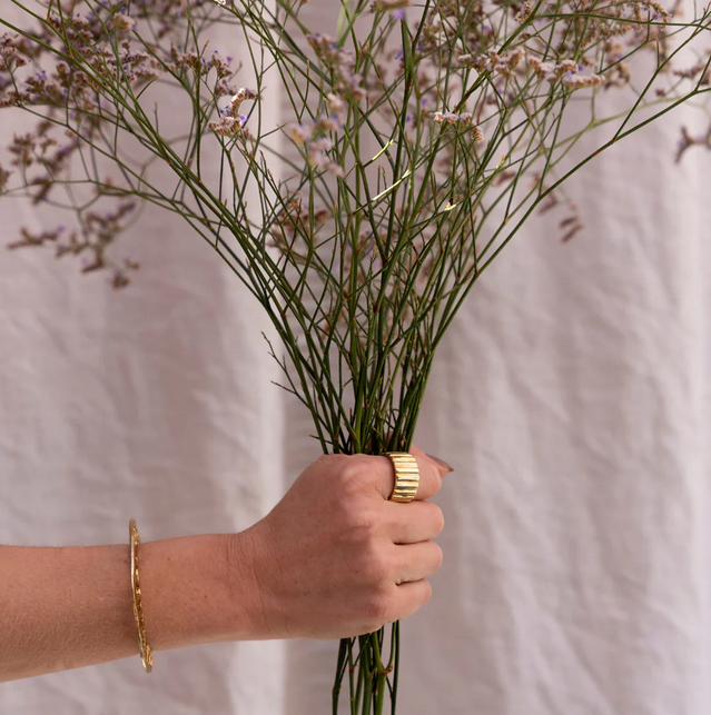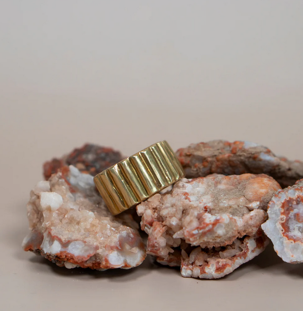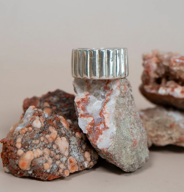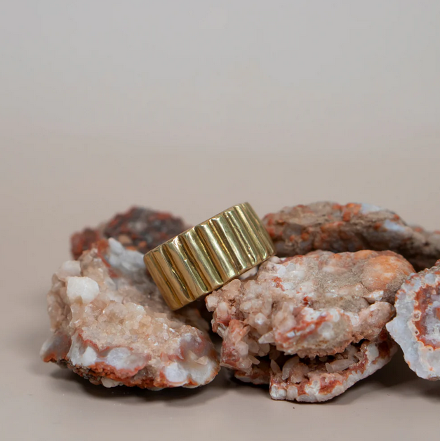 Corona Band – Named after the sun's outermost layer, the Corona Band captures a bold and radiant energy in its hand-carved design. This eye-catching ring is perfect for making a statement.