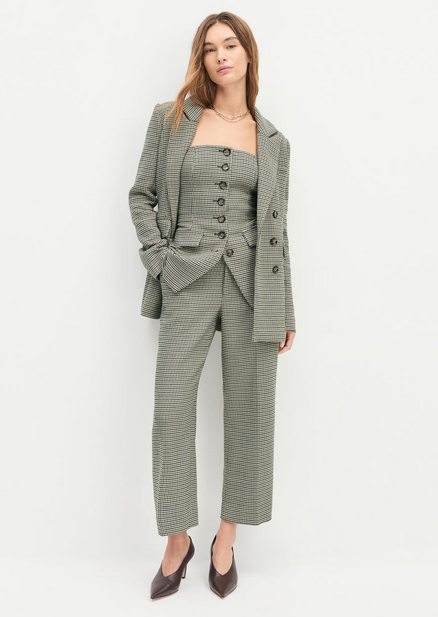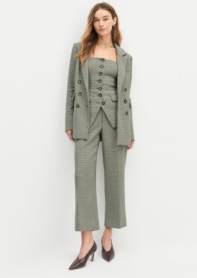 CloseThe Cropped Fiona Pant is a flat-front trouser inspired by our best-selling Favorite Pant. With a 11.75" high waist and cropped 27" inseam, these relaxed fit trousers are cut from a classic houndstooth for a timeless look.