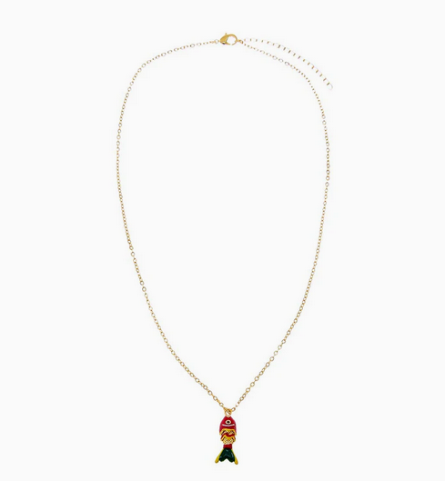 CloseYour stack's new centerpiece? The Colored Mini Fish Pendant Necklace by Adina Eden, a bold and brilliant Necklace. Delicate but distinct, this women's pendant necklace comes in Red, White, Black and Blue to match any look.