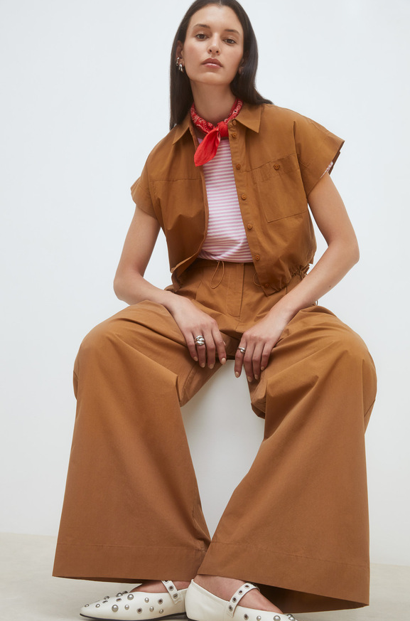 -Wide-leg drawstring pants