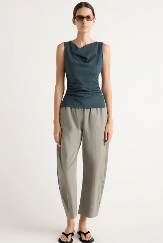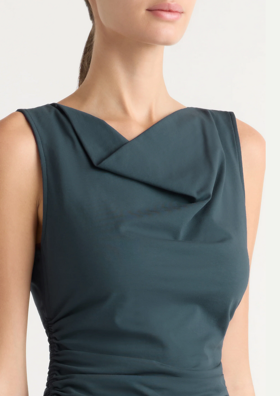 An effortlessly chic cowl-neck tee — Josie is a no brainer any day of the week, cut in a super soft luxe recycled cotton blend with shirred side seams for an elevated touch.