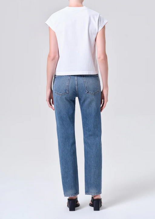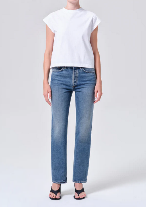 Feels Like: Rigid, non stretch cotton denim with a soft hand for all day wearability
