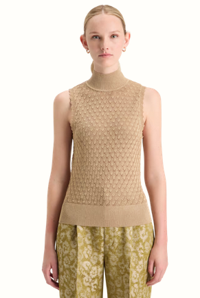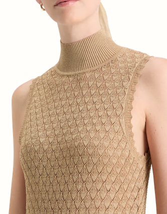 CloseShine on in our Metallic Pointelle Knit Tank. Its lightweight knit and subtle sparkle make it ideal for layering or as a stand-alone statement. Pair it with denim for a casual look or dress it up for a night out.
