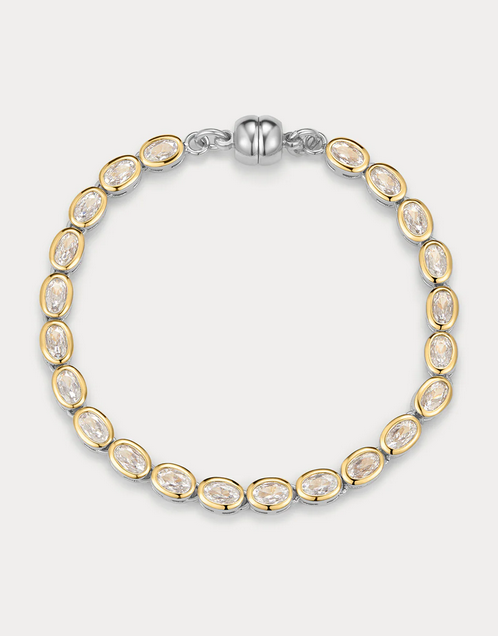 Statement two-tone tennis bracelet featuring oval-shaped CZ stones