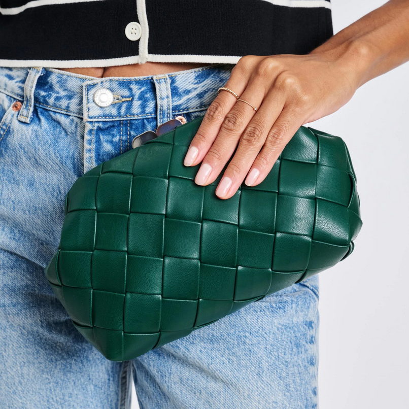 Exterior Details: Woven Design, Metal Kiss Lock, Detachable Chain Strap