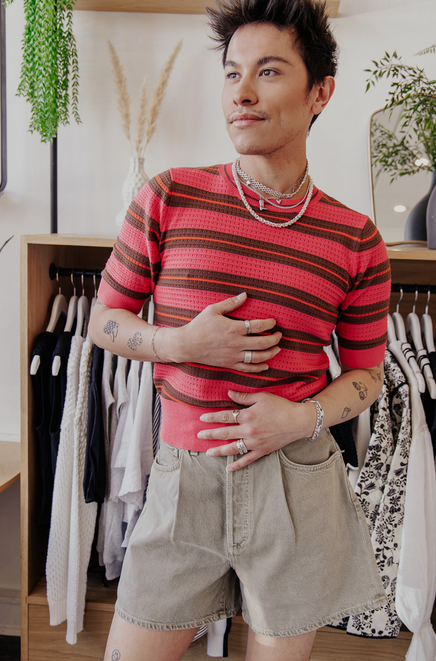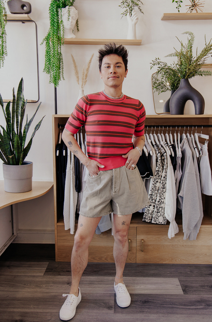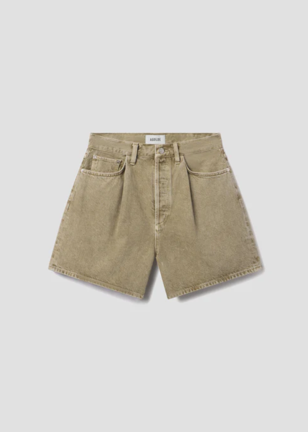 Looks Like: Medium cactus green short with marbling and pleat front detailing