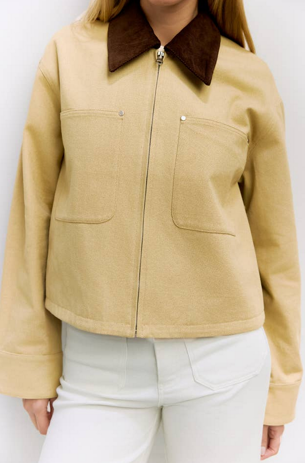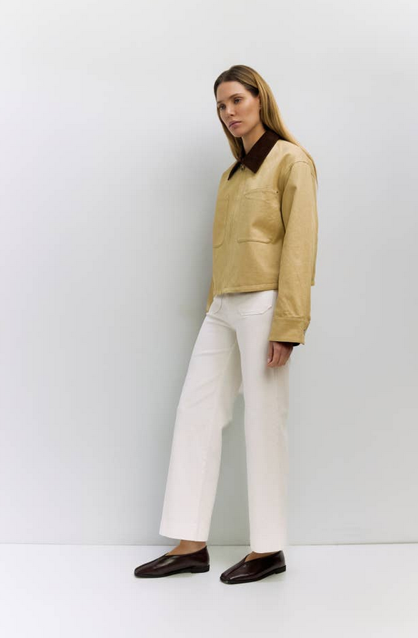 CloseThe Laurel Jacket features a contrast crewneck collar, full zipper, and patch pockets with rivet details. Long sleeves with partial cuffs and back pleats offer ease of movement, while the relaxed fit blends contemporary style.